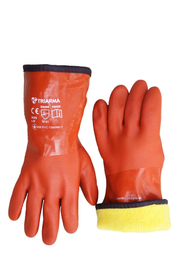 The gloves are coated with oil-resistant PVC, providing a reliable grip. Resistant to oils, chemicals and microorganisms, liquids. They have a warm fleece acrylic and cotton lining, flexible in use. The acrylic lining has good thermal insulation properties (cold insulation up to -20°С). For those working in difficult, cold conditions. The gloves are wear-resistant. The length of the gloves is 30 cm, which allows you to protect part of the forearm.
